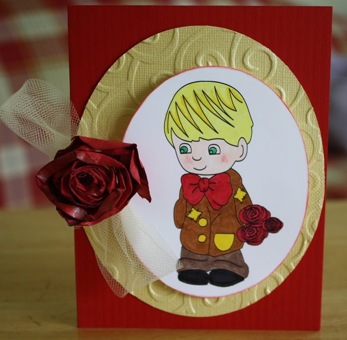 I love the little balloon that Oliver his holding. I used the following Copics on him: E27, E37, E49, Y04, B05, B24, YR24.