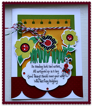 Here is my card that I made for the August sketch this month. Lisa gave me some wonderful new papers from Bella Blvd, called Sunshine and Happiness. I used the Popsicle Kisses and the Play Date papers on this card.