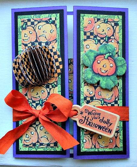 13.Glue pumpkin down 1 3/8” down from top of the card.