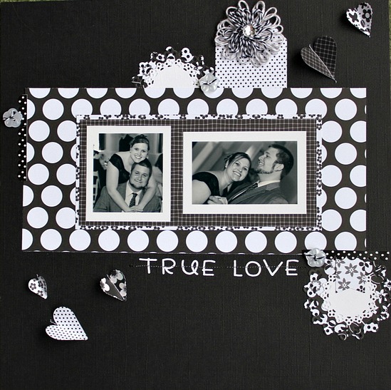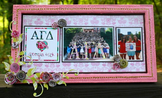 10.  Adhere the smallest ornament under the corner of the acetate in the left corner of the chevron paper.