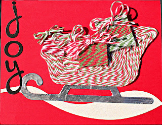 Here is what I made yesterday for The Play Date Cafe's challenge.  What better project to make on a snowy day than a snowy winter house.  I used my new Silhouette and the SVG File called Winter's Chill.  I had a lot of fun making a wreath out of The Twinery Twine.  I included some of the new colors that I got for