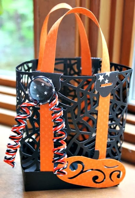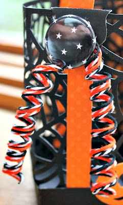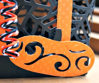 Here is my entry for the Boo to You challenge at The Twinery where I used their lovely twine to make a fun curled embellishment.  I used Stiffy fabric stiffener and wrapped the twine soaked in Stiffy around a chop stock and let sit overnight.  The bag and pumpkin are cut from my Silhouette.  I used Doodlebug's Halloween Parade for the tabs which so beautifully matched my Panda Eight flair.  This is also for the Paper Issues Hootenanny issue currently going on.  Check out both challenges, the prizes are awesome.