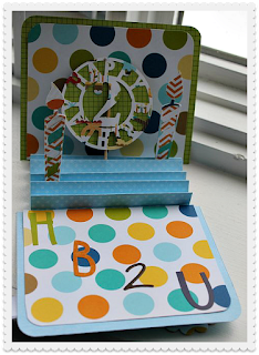 How fun are these tubes filled with yummy M&M's. I used Bella Boulevard's Birthday Boy line again and these tubes match the card that I did earlier this month. I am in love with my Silhouette. It is so easy to work with and cuts images that are intricate to easily. I made a pom pom from some The Twinery Twine and used one of Bella's lovely little matching flags to complete the top of one tube which I decorated with a candle and a 2 I had cut out. The other tube has the same Happy Birthday cut out as my birthday card. I put the green layer behind the die cut image and then cut out another circle of blue cardstock and glued a toothpick in between the two layers. I made a hole in the top of my tube and glued in the toothpick so that it will be stable.