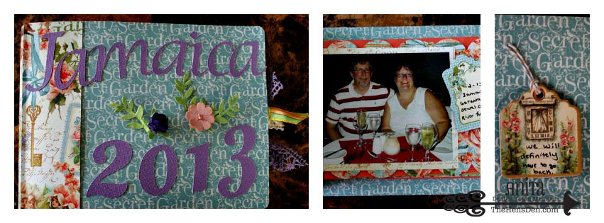 This is my last project with this lovely collection from The Hens' Den store and I am sad to see it go. I might have to see if I can get more. I was supposed to be scrapping with a dear friend on Cape Cod for our annual trip and had to leave on Friday because I had the stomach bug. I felt better on Saturday and we got together at my house and I made this card then. I was so glad to be able to work the post card calendar onto a card.