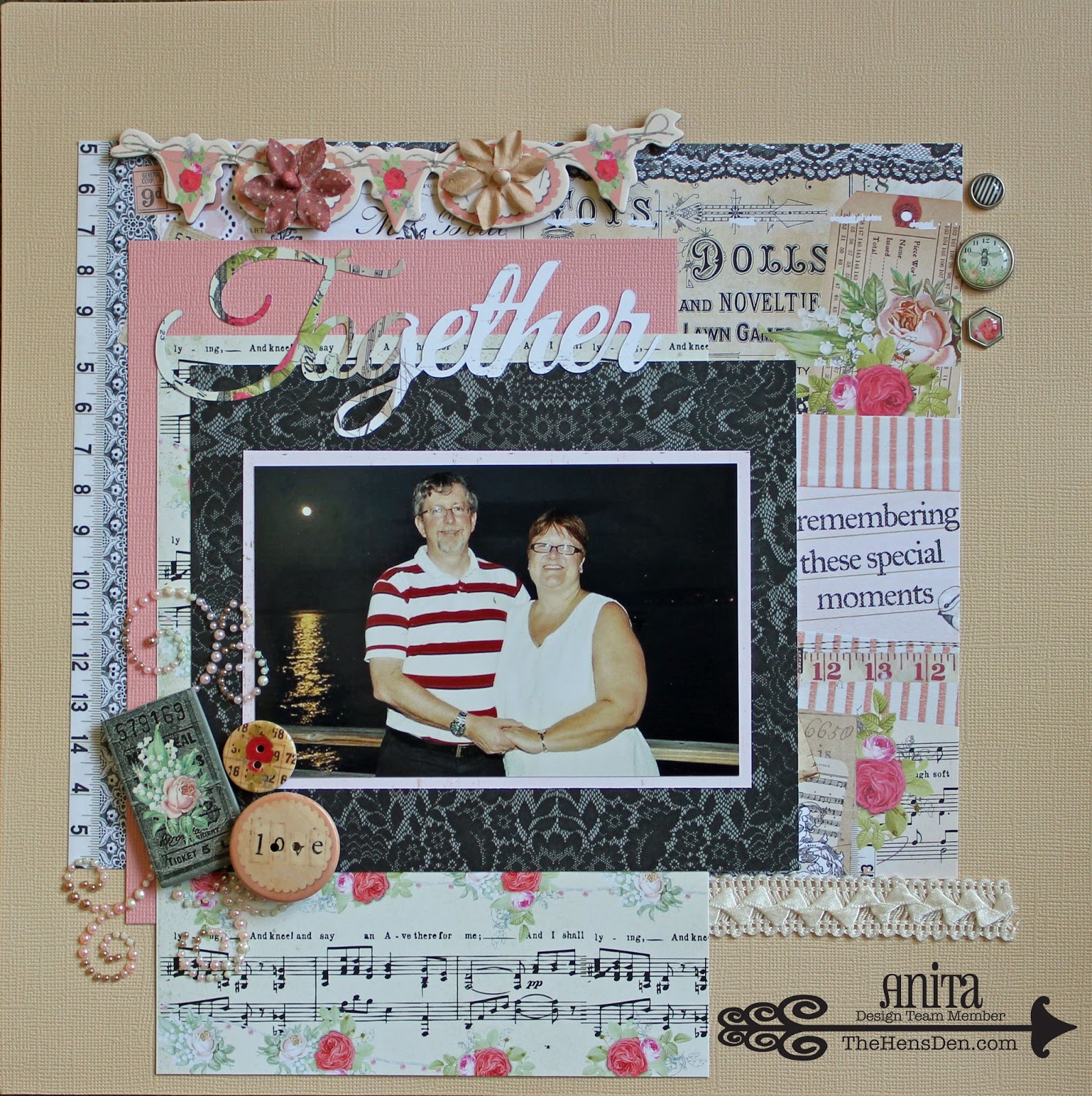 Here is a layout that I did from our wonderful trip to Jamaica. I adore my hubby and we had such a romantic day. Everyone thought we were celebrating something big and kept asking us. We were, celebrating our love and the fun that we always have together. I love how the moon is captured in the background and the way it matches these papers so perfectly. I don't know how long Charlie is going to be able to keep these in The Hens' Den store so I would definitely get mine while I could. I love how the word together came out so pretty on these papers using my Silhouette. Have a great weekend everyone.