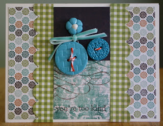 I just love how my last card came out. It is probably my favorite of the four. I used My Mind's Eye Lost and Found Breeze papers. I found that I had two buttons and one stick pin from MLBOW that worked perfectly with these papers.