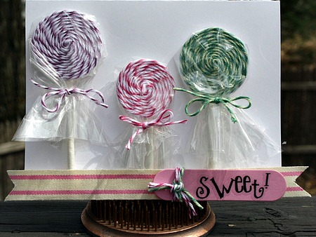 Here is my card that I made for the Create Challenge Card Gallery to go along with this sketch which is from April 2012. I had such fun making my lollipops out of twine. I used Trendy Twine and I really love the color blend of this twine. I am guest designing for them in May and can't wait. You can check out the Create challenge here and the Trendy Twine site here.